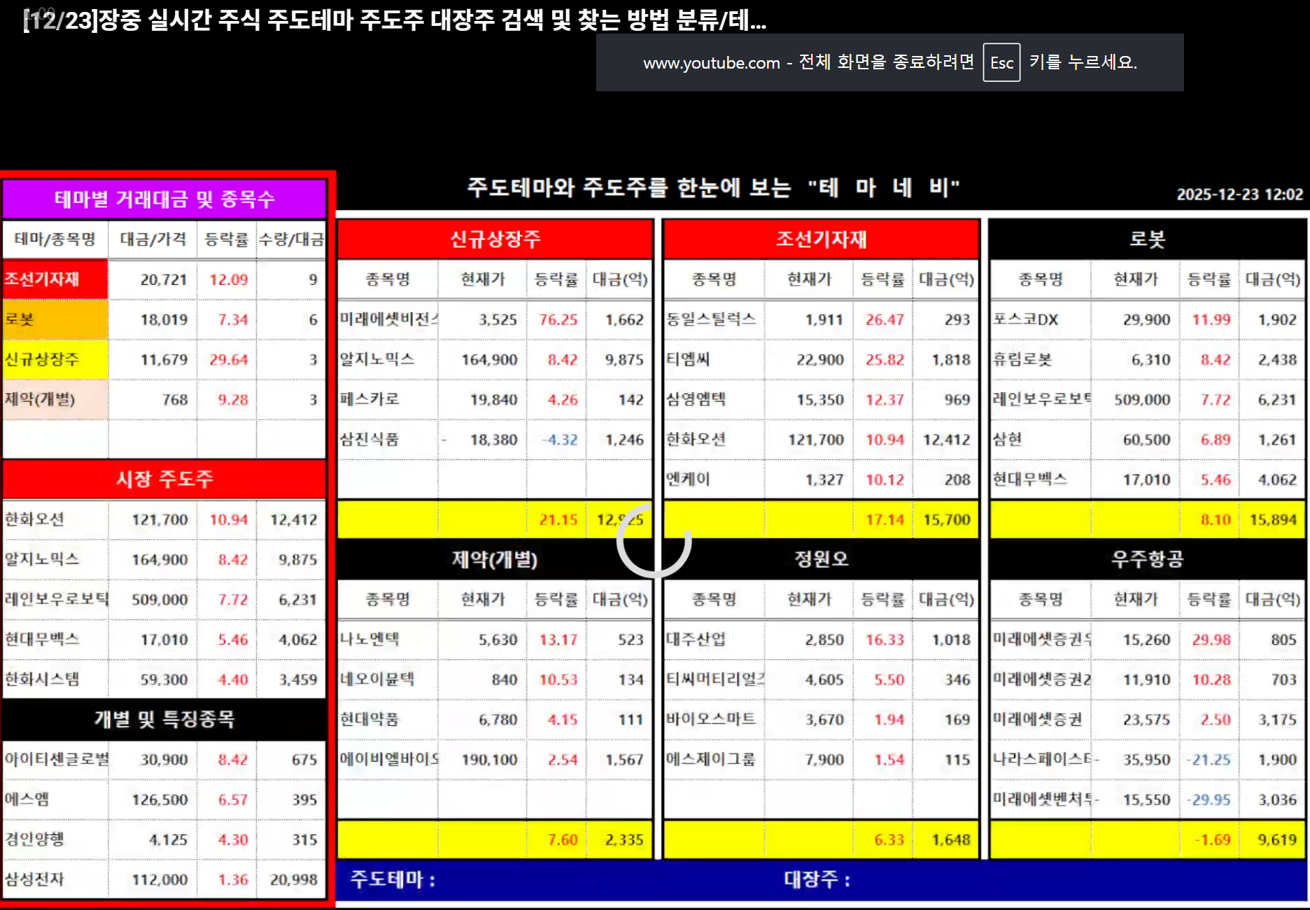 📉2025.12.23(화요일) 종목정리(테마네비) - 유투브