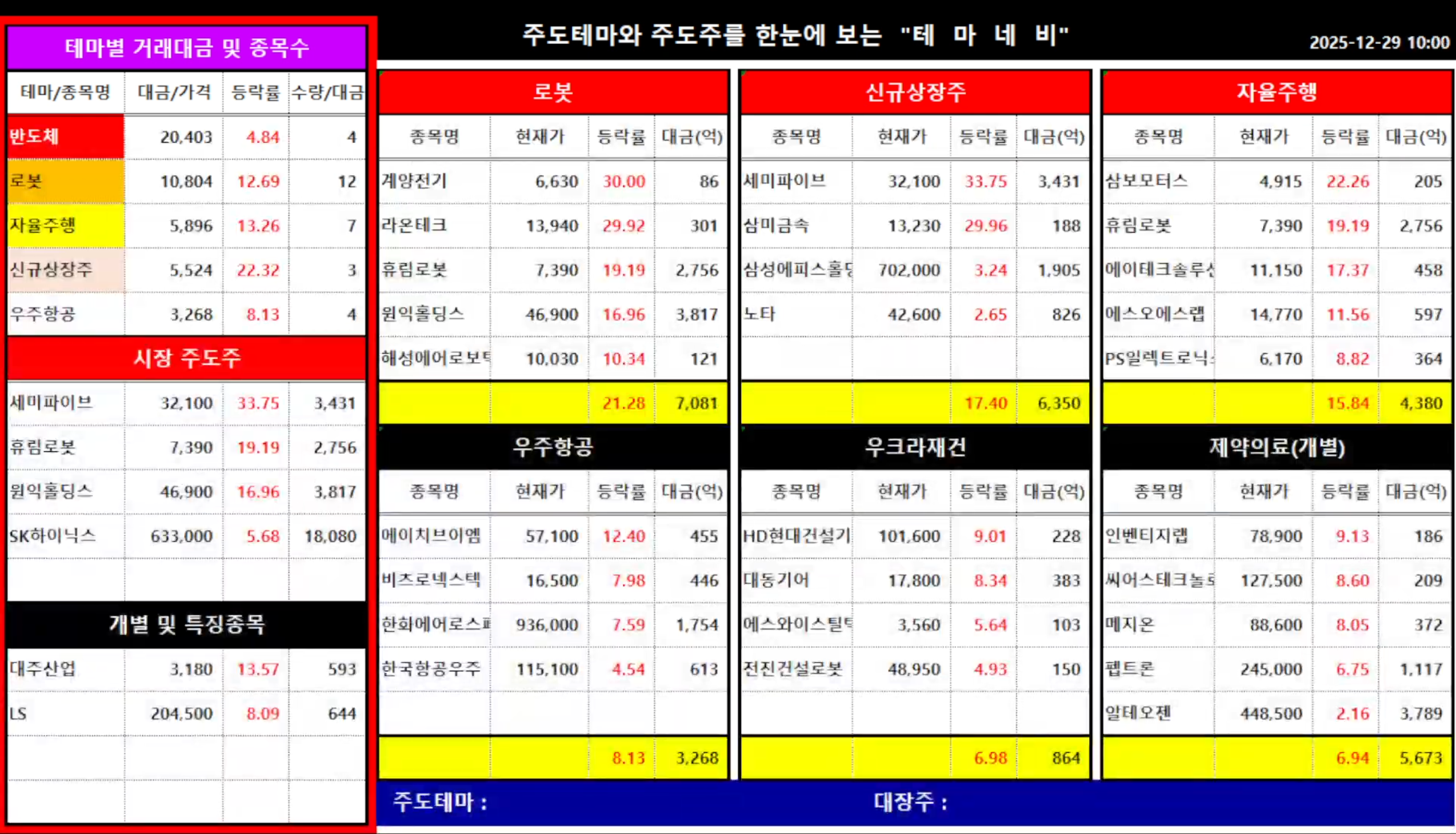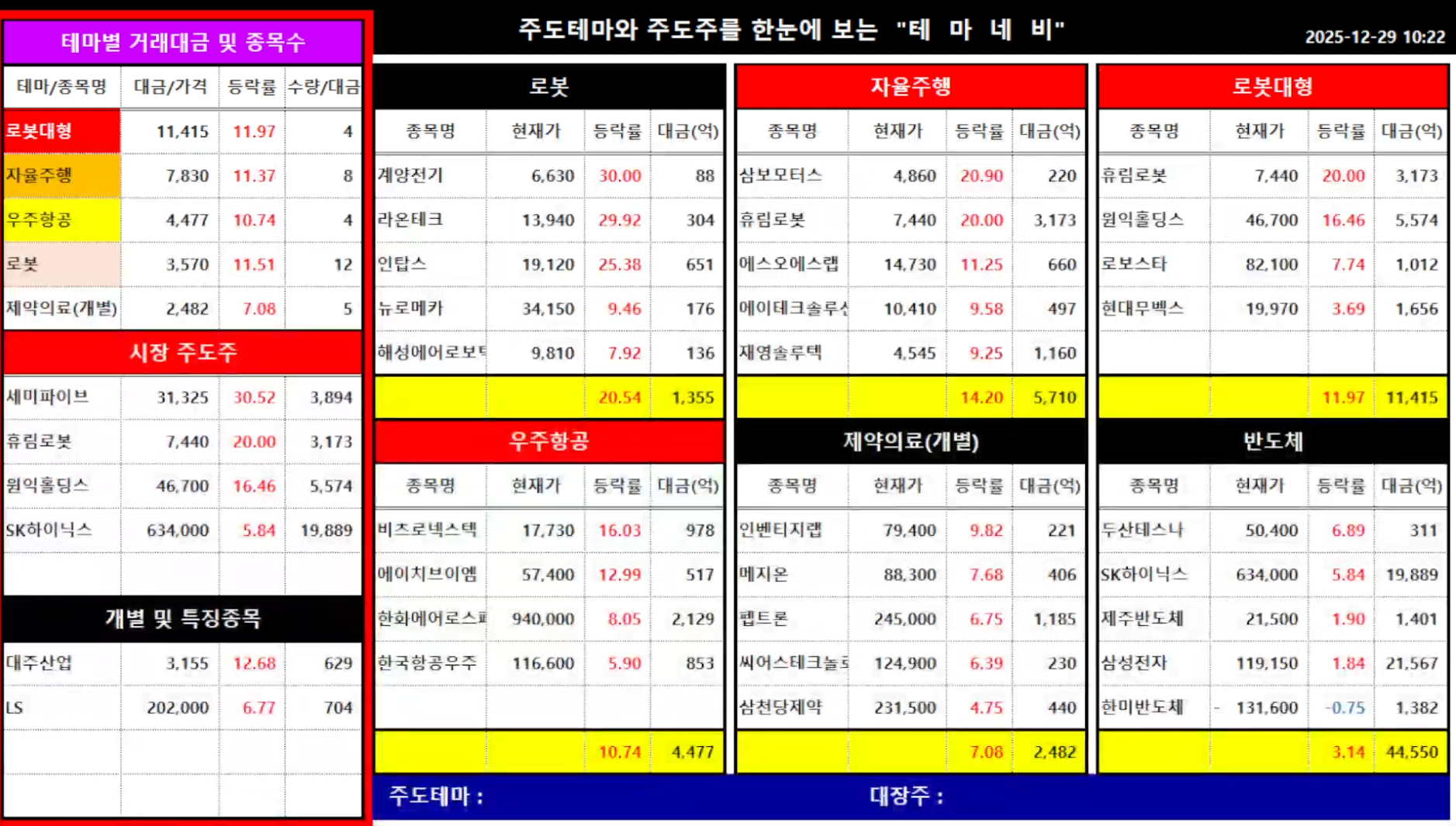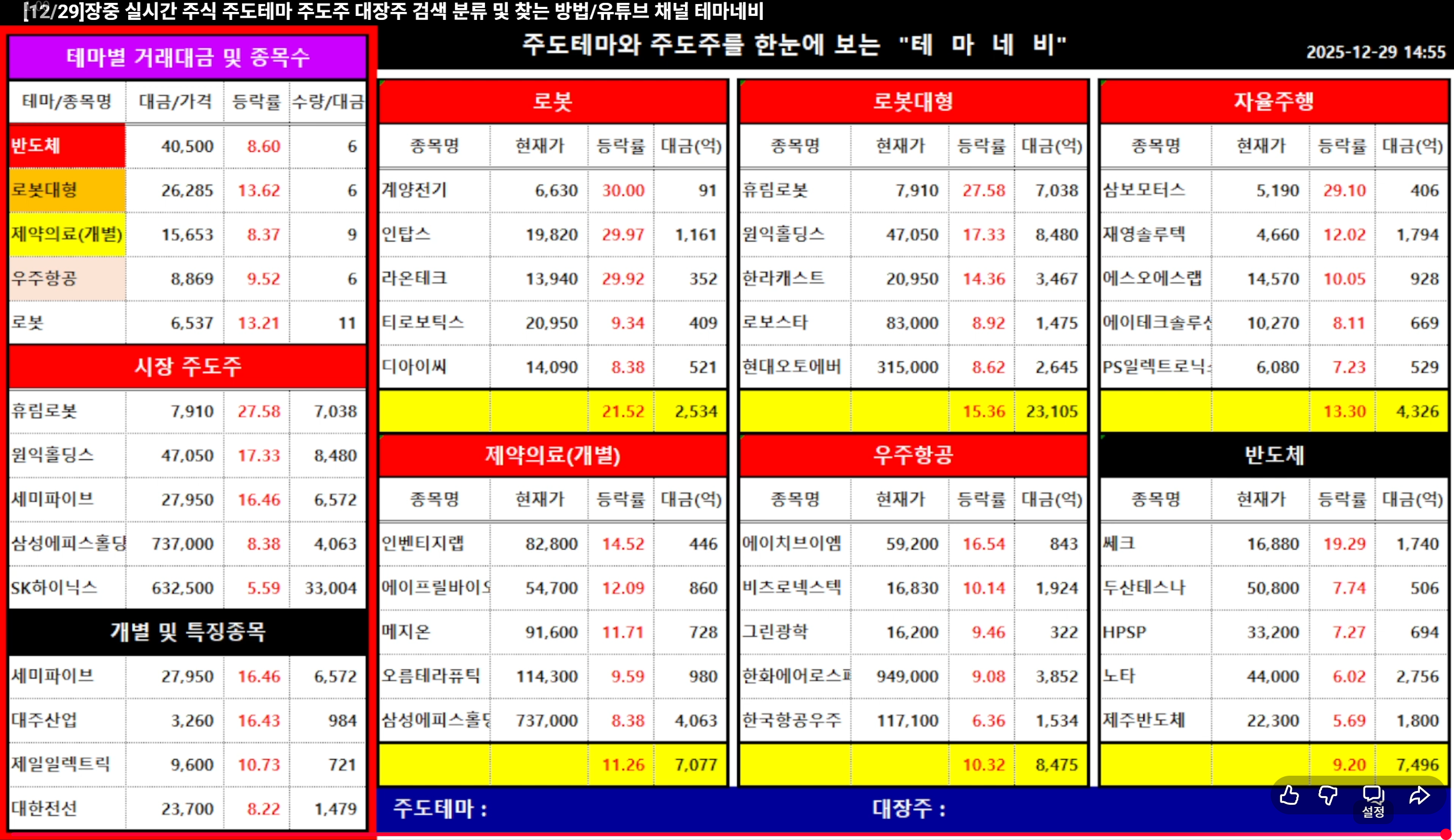 📉2025.12.29(월요일) 종목정리(테마네비) - 유투브