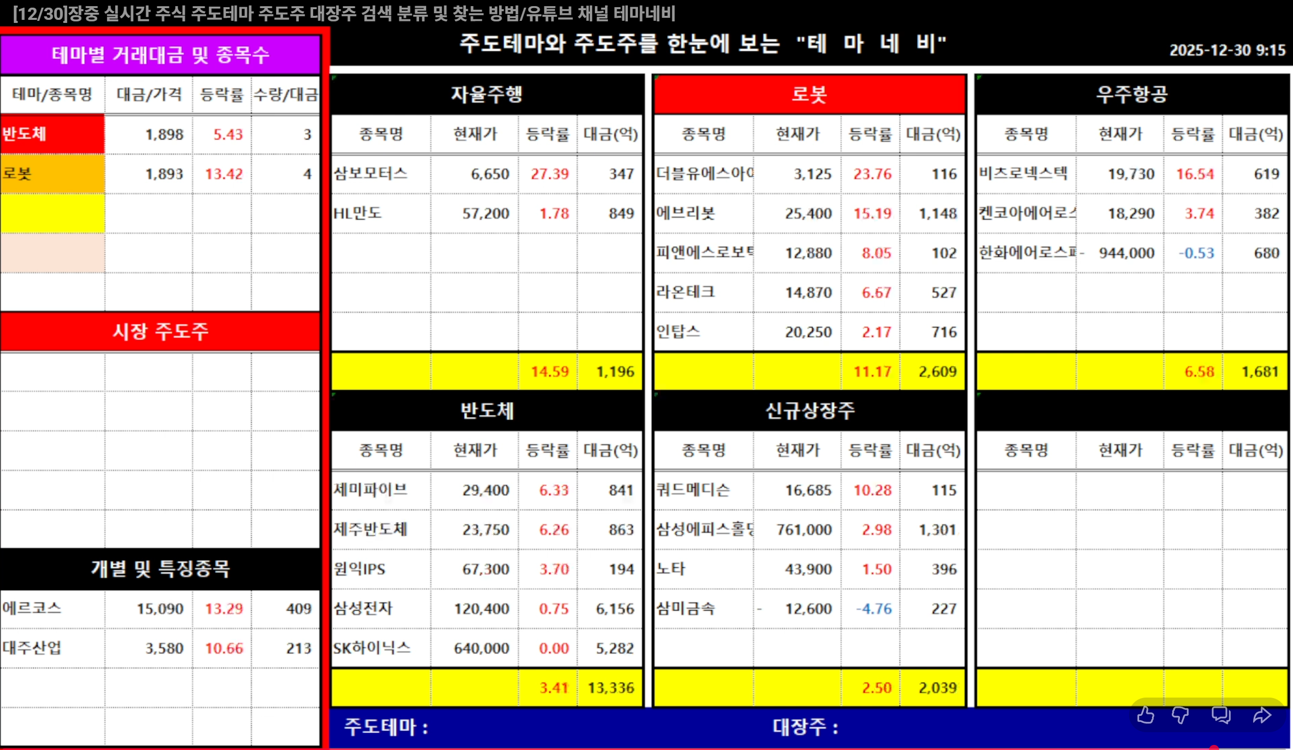 📉2025.12.30(화요일) 종목정리(테마네비) - 유투브