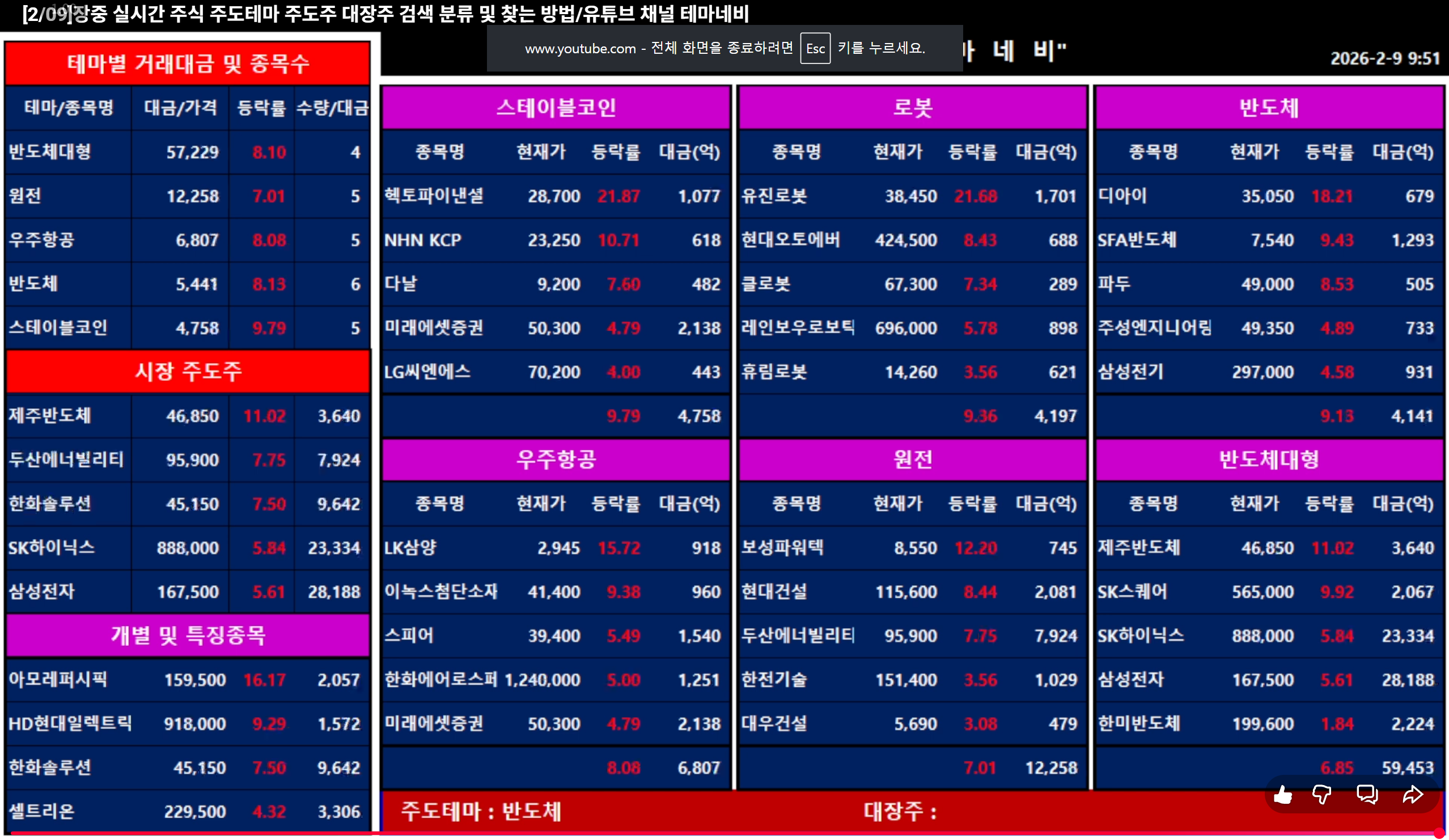 📉2026.2.0(월요일) 종목정리(테마네비) - 유투브