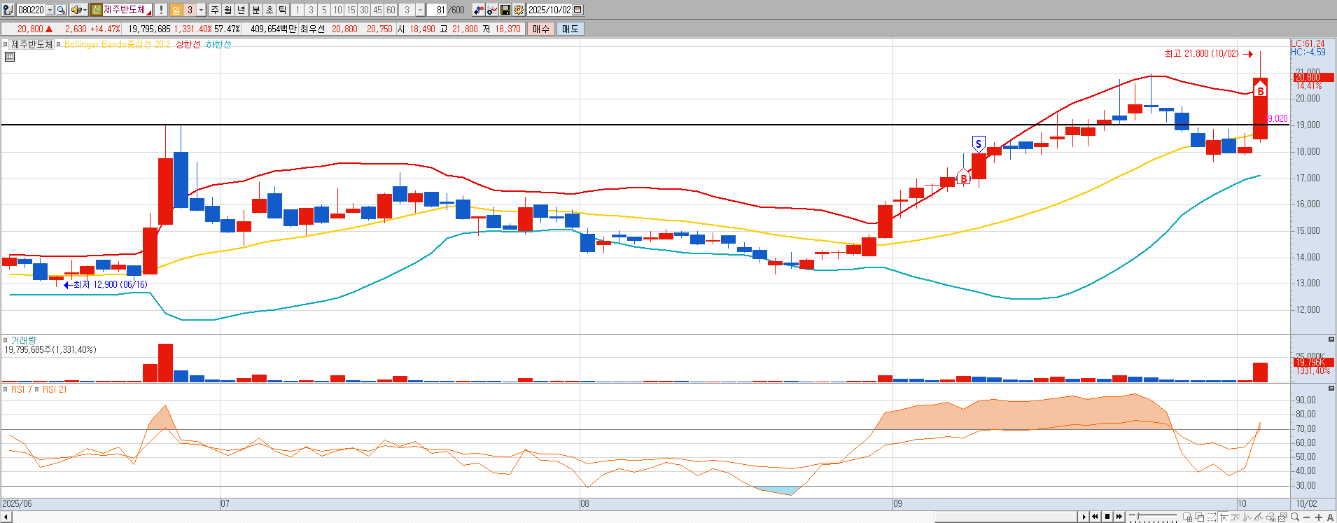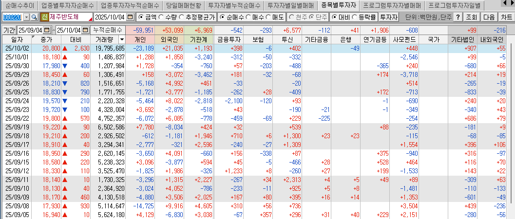 반도체 관련 주식 으로 10월2일 전고점 19,020원을 동파해서 종베 결정을 했다.