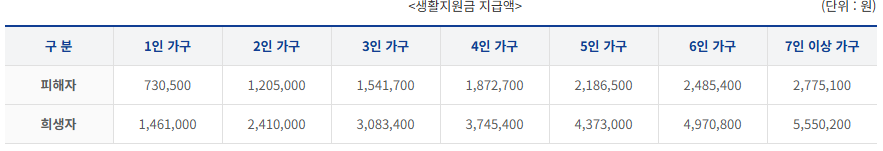 | 대상 | 희생자/피해자 가구, 현장 수습 등 |